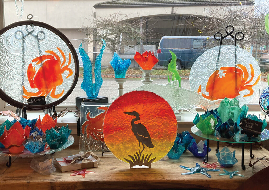 Housed in a charming historic building in Kitsap County, glass artist Lisa Stirrett runs a working glass studio open to the community and focused on empowering women through art. The Lisa Stirrett Creative Warrior Studio showcases colorful glass art from butterflies to hanging mermaid ornaments, all handmade in Silverdale, and provides space for all to experiment with glass art creation.